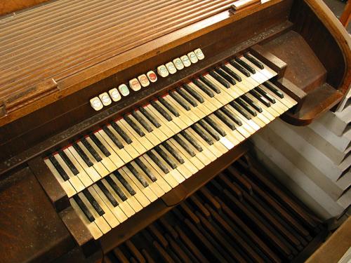Console - Description Deux claviers à gradins, registres au-dessus des claviers