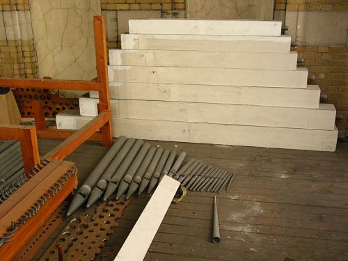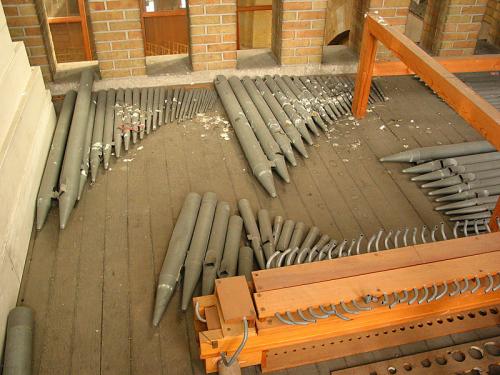 Construction - Particularités Orgue démonté, les conduites pneumatiques ont été sectionnées