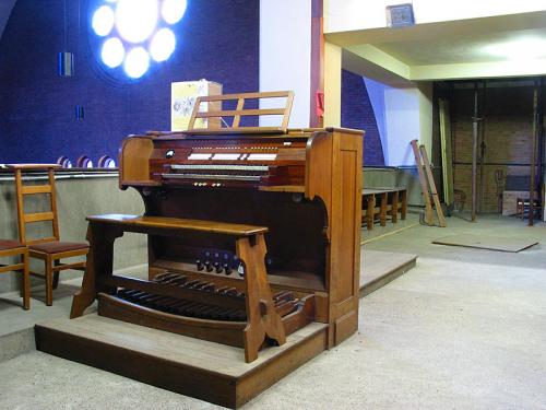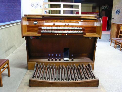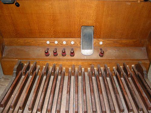 A gauche des claviers, un cadrant de voltage. Sous la table des claviers à gauche, gros interrupteur pour le moteur.