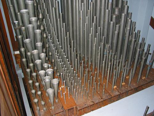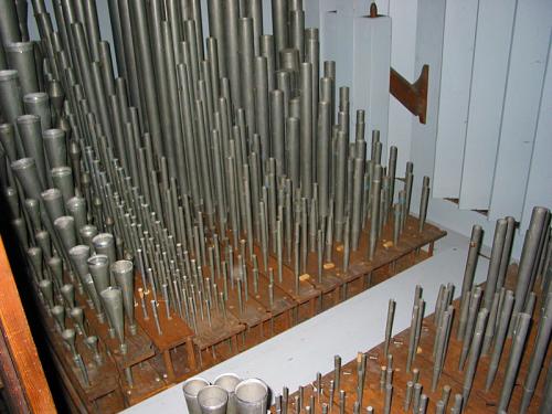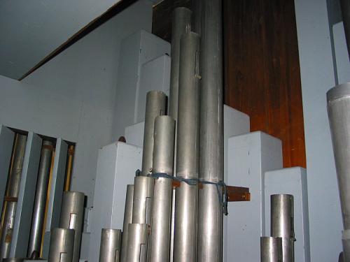 Les tuyaux de façade, en étain laminé très fragile, ont été remis en forme le mieux possible.