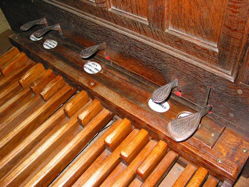 Trois tirants de registres avaient été enlevés, probablement pour éviter que l’on ne se rende compte des problèmes causés par certains clapets de transmission défectueux. La pédale d’appel des Anches avait également été supprimée.