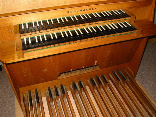 Construction - Particularités A l’origine ces instruments sont nés d’un projet commun entre Stéphane Schumacher, facteur d’orgues, et Hubert Schoonbroodt (+ 1992), organiste, pour faciliter l’accès à l’orgue par la construction d’instruments peu coûteux.