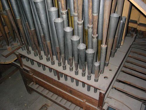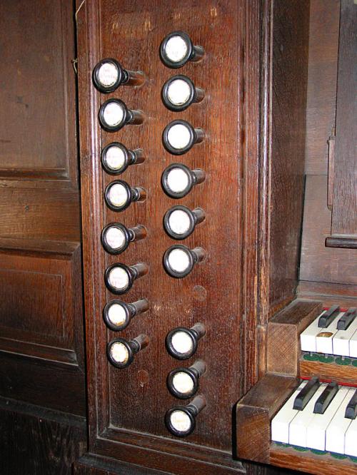 Plusieurs jeux furent repris de l’orgue précédent de Egide-François Van Peteghem de Gand et de l’orgue d’Alsemberg de Pierre-Hubert Anneessens de Ninove.