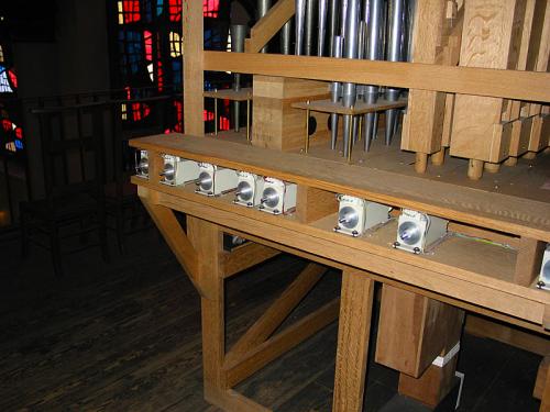 A la gauche des registres de gauche, allumage de l'orgue avec témoin lumineux.