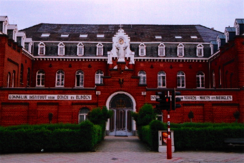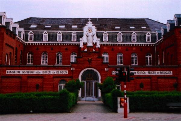 L’origine de cette institution créée par les Frères de la Charité remonte à 1835. Initialement située à Bruxelles puis à Schaerbeek, elle s’installa à Woluwe-Saint-Lambert en 1878, suite à un conflit avec la ville qui l’obligeait à quitter l’immeuble qu’elle occupait rue des Palais. L’architecte H. Jaumot fut choisi par la direction de Gand pour ériger le nouveau complexe. Issu de l’école Saint-Luc, cet architecte s’illustra en réalisant plusieurs écoles, notamment à Schaerbeek, où il exerçait la fonction d’architecte communal. L’implantation des nouveaux bâtiments à cet endroit, alors situé en pleine campagne, eut un impact considérable sur l’urbanisation de la commune puisqu’elle généra la création de tout un nouveau quartier. Empreint d’un profond régionalisme, le complexe d’inspiration néogothique est représentatif des préoccupations pratiques et des tendances architecturales prônées à l’époque. Les façades, dominées par la brique, affirment leur style au travers de divers éléments des décors tels que les gradins, les ancres, les contreforts, les baies généralement cintrées ou en forme de rosace animée de remplages. Les bâtiments principaux comprennent deux niveaux sous toiture mansardée. Ils sont disposés en U autour d’une cour clôturée à front de rue par un mur. L’aile gauche renferme la chapelle consacrée à Saint-Vincent-de-Paul, protecteur des handicapés et dotée d’un orgue de style romantique d’une qualité remarquable, œuvre de J. Merklin (1860).