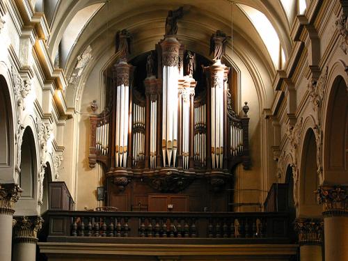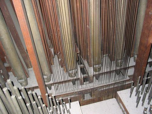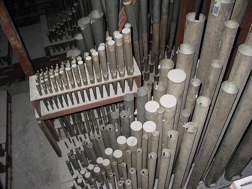 TROMPETTE 8’. 30 pijpen met tinnen bekers waarvan de 20 eerste op basis van ijzer zijn, Franse kop met ring, snavelkeel, Franse stemkruk en opgerolde insnijding.
