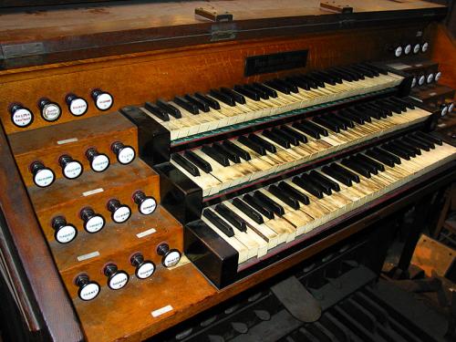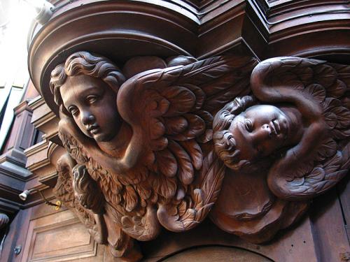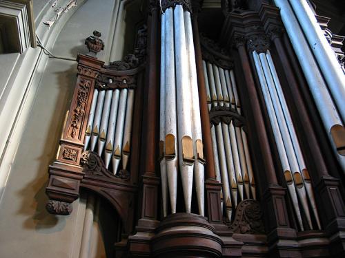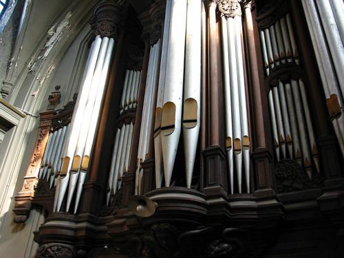 BOURDON 16’. 20 gedekte eiken pijpen met kernsteken en zijbaarden waarvan 10 achter het front en 10 geposteerd op de zijkant van de windlade, dan 36 tinnen pijpen met mobiele hoeden, zijbaarden en kernsteken.