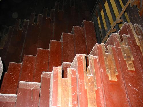 KWINT 10'2/3. 30 open pijpen in geschilderd grenen, met stemplankjes (do1 tot fa3).