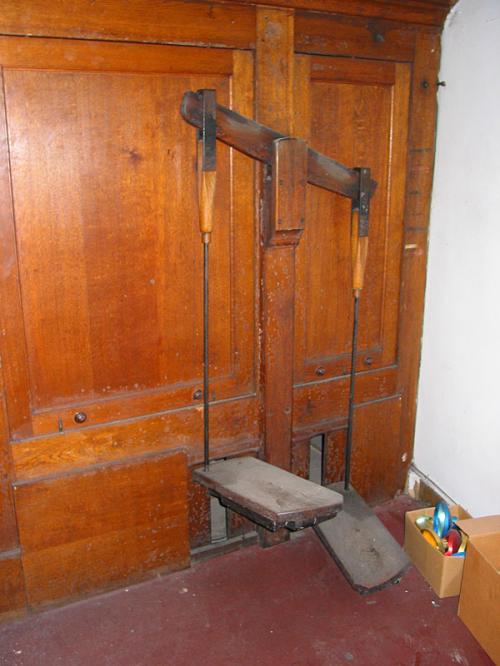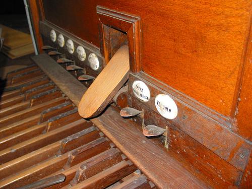 Speeltafel - plaats Vrijstaande speeltafel, voor het instrument. De organist zit naar het koor gewend.