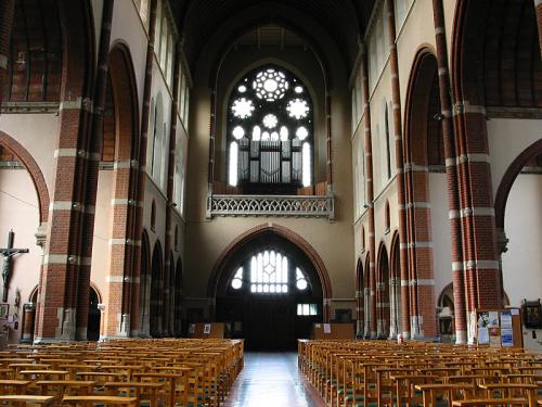 Beschrijving van de orgelkast Sokkel van 3,50 x 4,50 m met daarin de windvoorziening en daarboven het pijpwerk. Front verdeeld in vijf velden en versierd met namaakpijpen en elementen van houtsnijkunst (klaver, spitsbogen en leliebloemen). Bovenaan zes houten torentjes.
